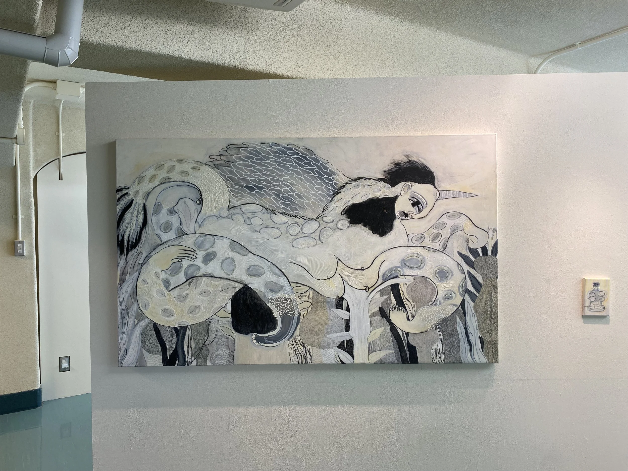 120cm x150cm.Acrylic, pencil and charcoal on canvas.
